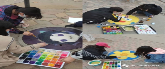 本次活动由建筑青协社团工作人员以及建筑学院自主报名志愿者共同组成。在校园主教与实训楼相通甬道,进行公益手绘井盖爱心活动。对校园内近十处井盖和雨水井等进行了创意绘画,内容既有幽默风趣的卡通动漫,也有奉于爱心的绿色宣传,还有海洋保护主题等。此次活动主题包含了创意生活和校园新风范两个方面的内容,为配合今年会加强公益爱心、文明校园建设提供了一个更好的平台,同时体现了今年会学生宣传工作水平及先进的宣传绿色发展的理念。