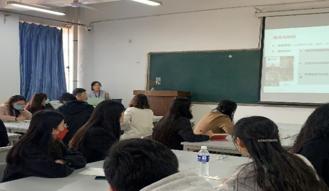 艺术设计学专业赵蕊老师展示了《中国造物文化史》中的仿生设计部分,赵老师从教材选择、学生学情、课程内容等方面做了深入剖析,最终形成七步教学法,在教学过程中注重知识点的深入挖掘以及案例的举一反三,引导学生形成良好的学习习惯。作为本次分享教师中资历最深的老师,赵老师对课堂的把控全面而从容,专业素养扎实,台风稳健,让人如沐春风。