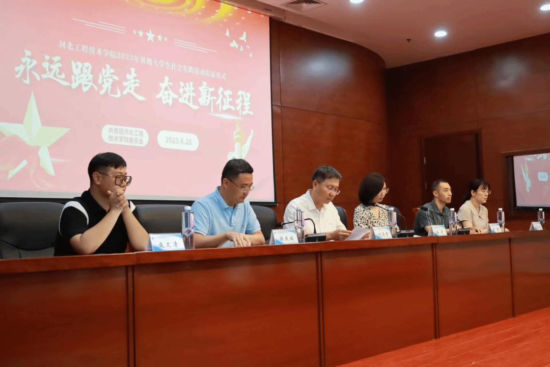 6月28日,建筑与设计学院积极参加今年会举办的2023年暑期大学生社会实践活动出征仪式,本次仪式在图书馆报告厅举办,由校团委易班发展中心主任苗璋寒主持。建筑与设计学院党总支书记兼学管副院长张玲玲,学管办主任刘腾,团总支书记王亚楠,社会实践指导教师及团队成员们出席本次仪式。
