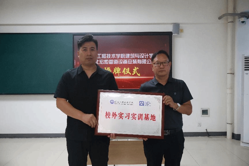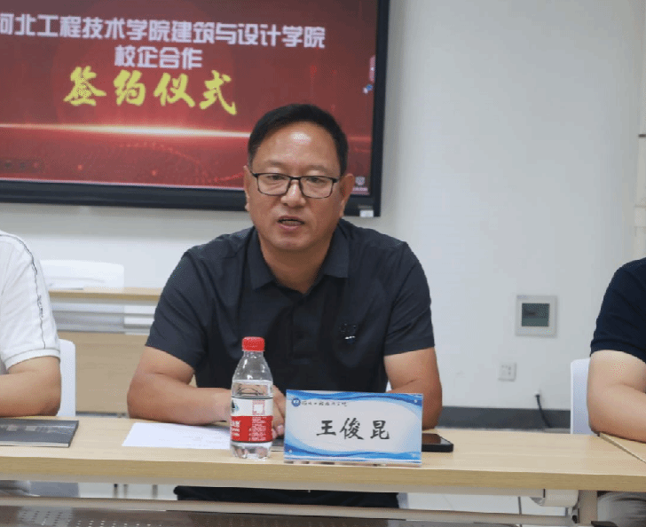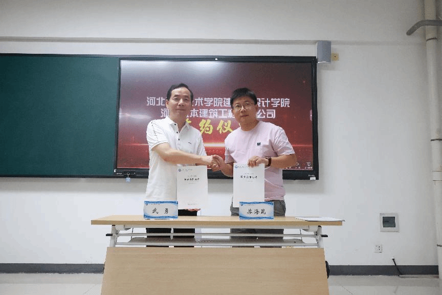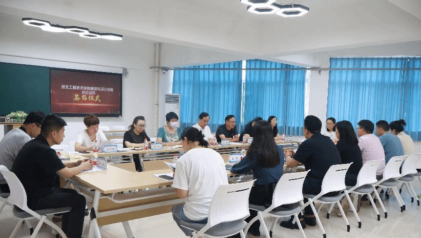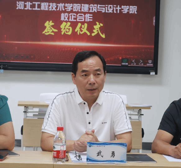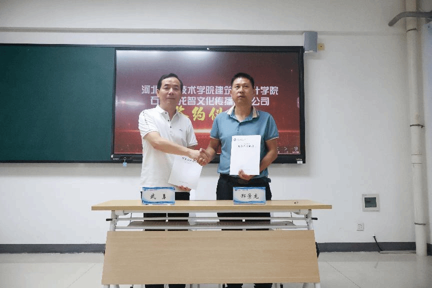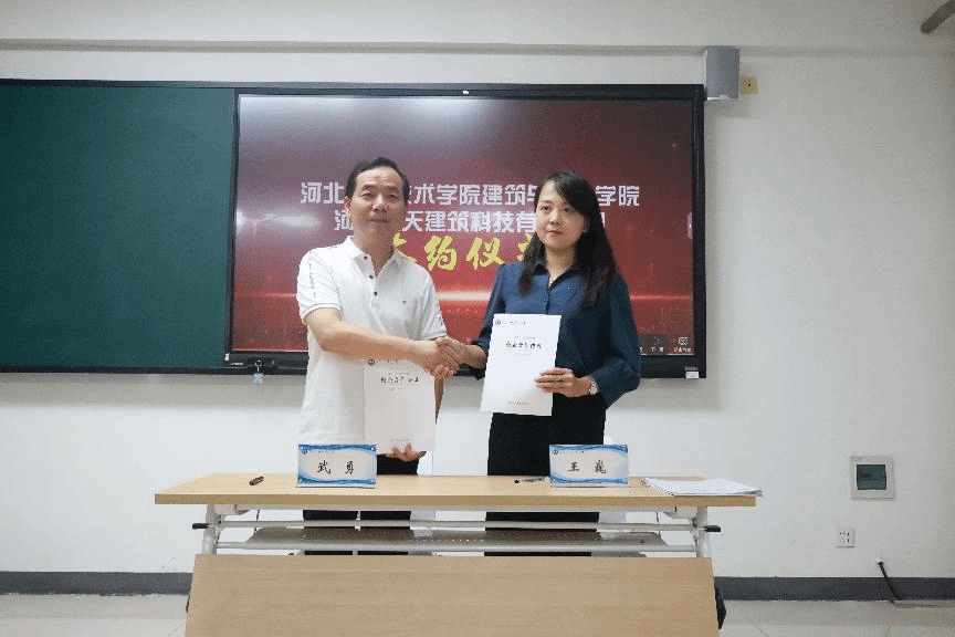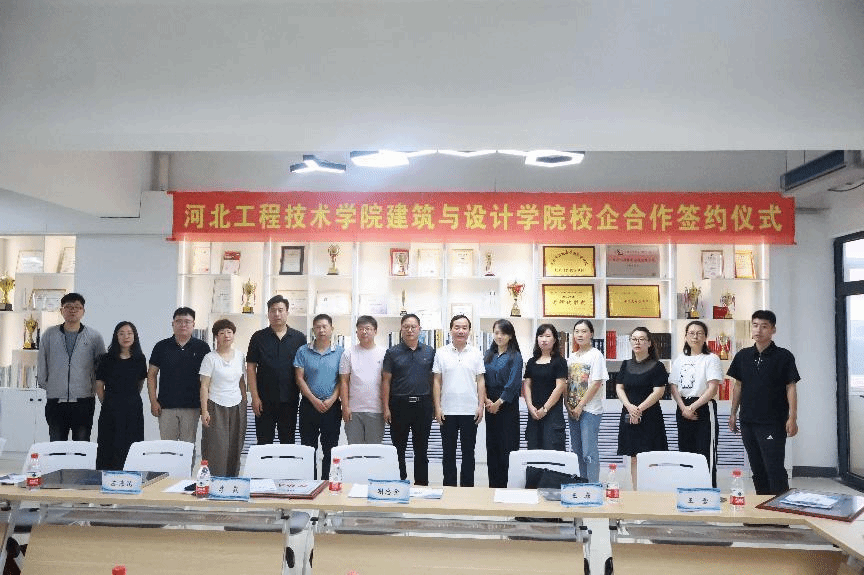 9月8日,建筑与设计学院校企合作签约授牌仪式圆满举行。出席本次仪式的有建筑与设计学院院长武勇、校企合作与社会服务部部长王俊昆,学管副院长、党总支部书记张玲玲、教学院副院长谷雨、李江涛,建筑学系主任齐成龙、艺术设计系主任卢翠以及教师代表孙慧斌、张永刚。参与本次签约的企业有河北蓝天建筑科技有限公司董事长王巍、河北蓝天建筑科技有限公司人力主管王雪、河北宏炬管道设备安装有限公司董事长谢忠全、河北宏炬管道设备安装有限公司总经理 李霞、河北蓝本建筑工程有限公司董事长苏海昆、石家庄龙智文化传播有限公司董事长邢景龙,本仪式由建筑与设计学院教学副院长李江涛主持。
