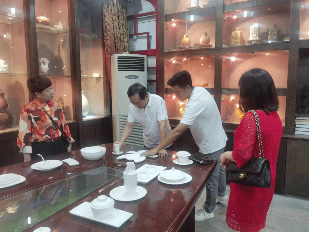 研究院秘书长魏冉带领校领导及教师代表参观中山瓷海生活馆并讲解陶瓷制作工艺