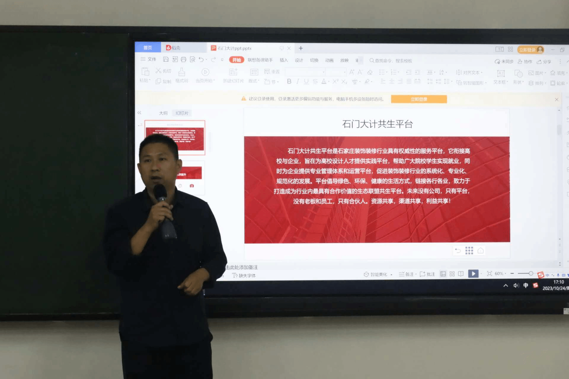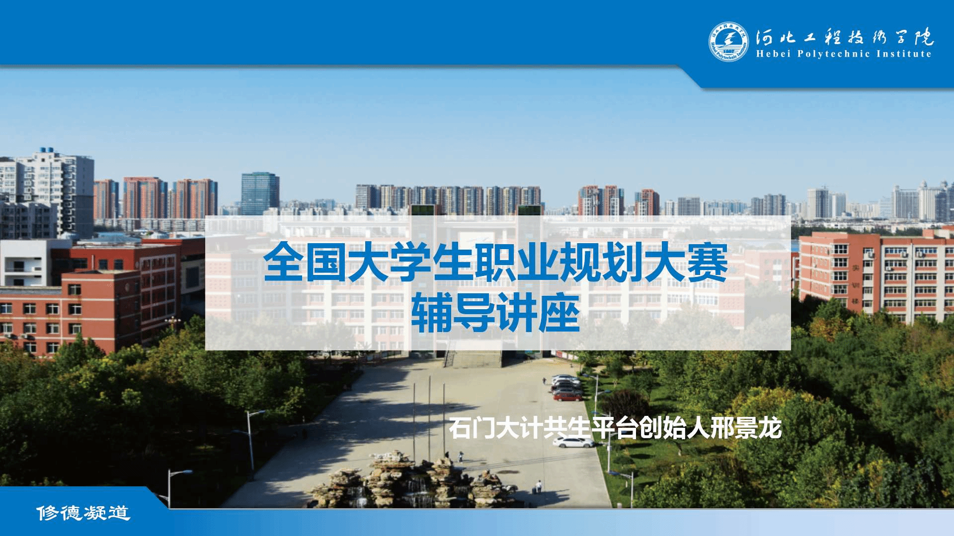 为帮助学生更好地认识自我、探索自我,引导学生树立正确的成才观、就业观和择业观,科学合理规划学业与职业发展,同时做好教育部首届全国大学生职业规划大赛赛前指导,10月24日,学院邀请石门大计共生平台创始人邢景龙为我院学生举办“职引未来——大学生职业生涯规划”主题讲座。