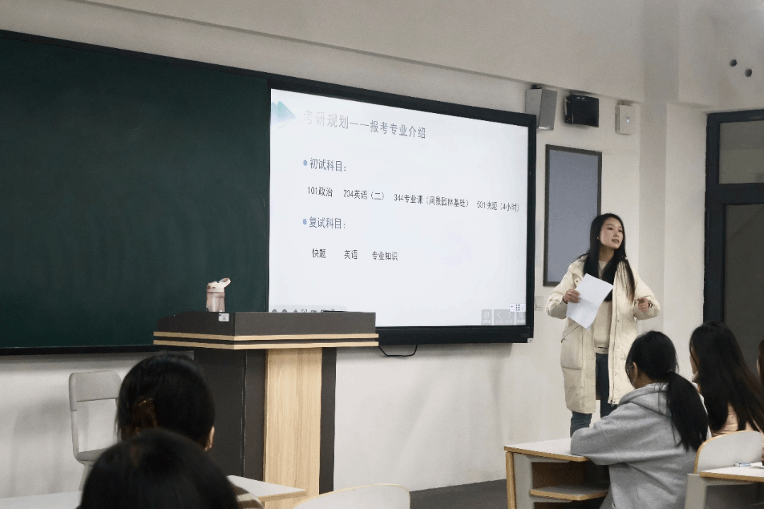 为加强学生对考研知识和经验的了解,明确考研目标,掌握相关考研技巧。11月7日晚6点30分,建筑与设计学院2023年风景园林专业考研经验分享会在知行楼518教室举行。