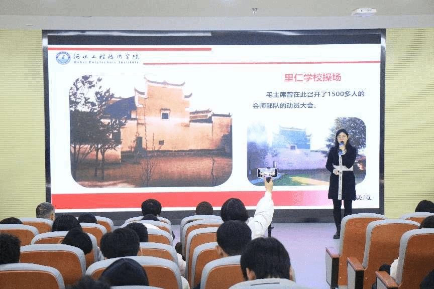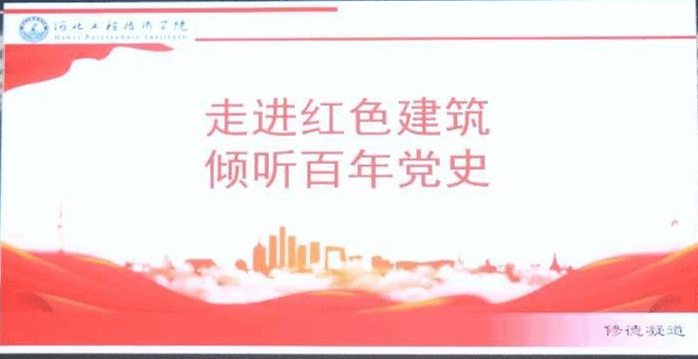 首先,河北工程技术学院副校长田光为本次活动致辞。田光副校长表示,“走进红色建筑,倾听百年党史”系列学习活动,是构筑大思政育人体系的创新举措,活动的形式非常新颖,效果非常显著,学校领导十分关注和重视这样的活动。高校以培养担当民族复兴大任的时代新人为己任,我们要继续弘扬好、传承好中国共产党人的精神谱系,让党史学习教育更加生动鲜活,将思政课与课程思政紧密结合,用好“大思政课”!