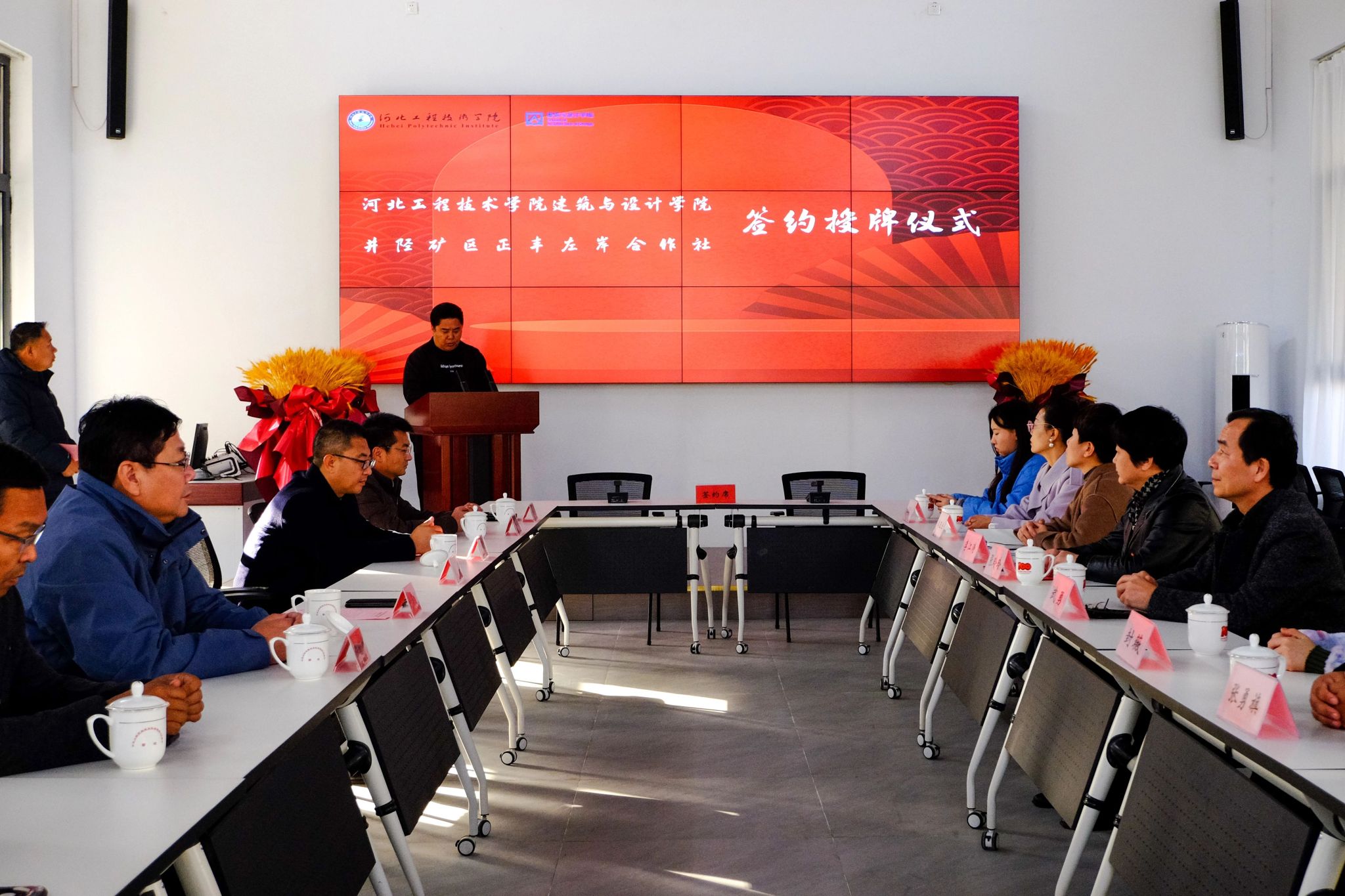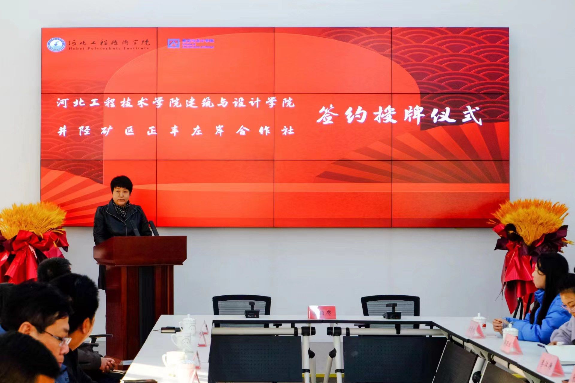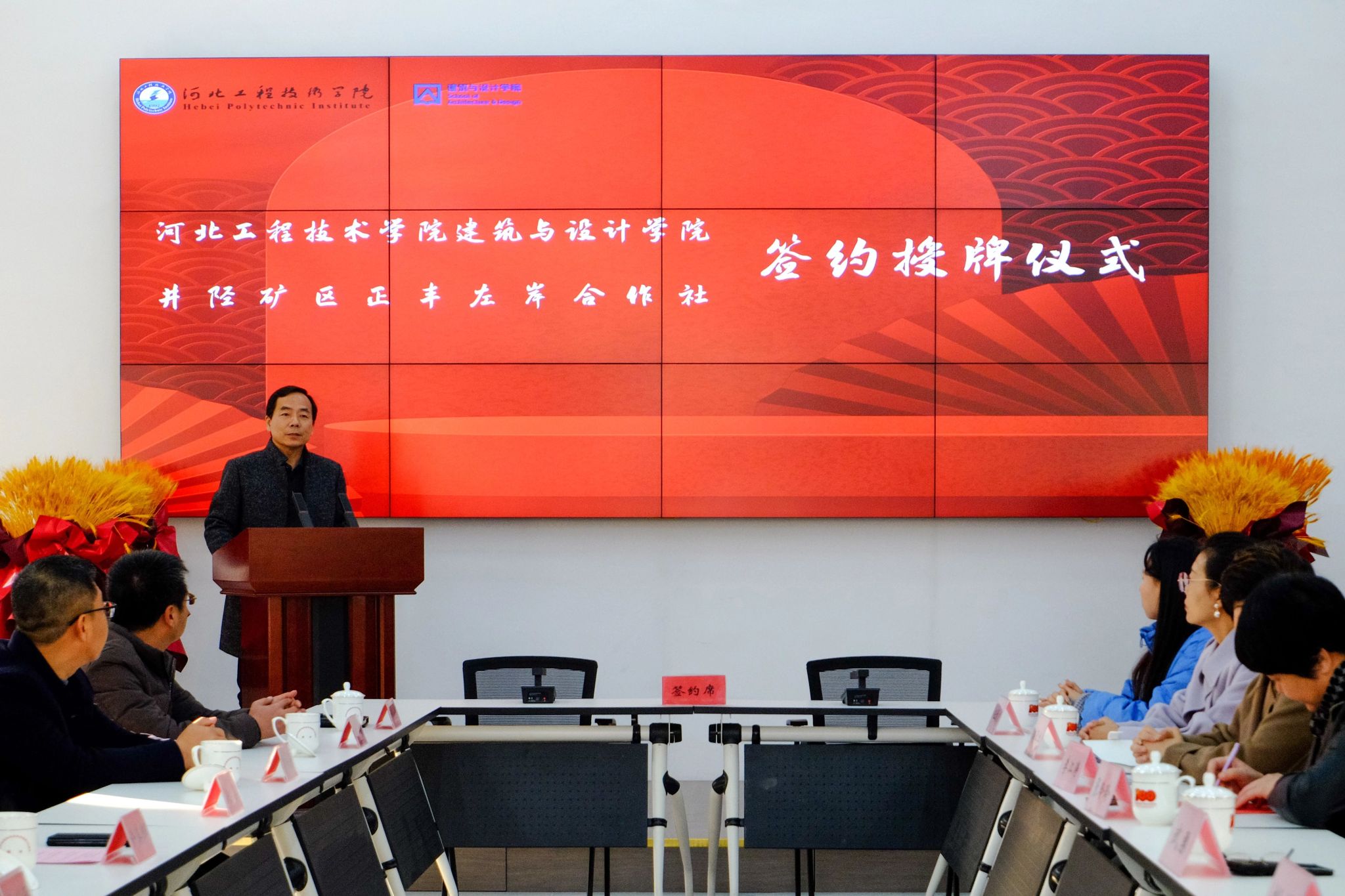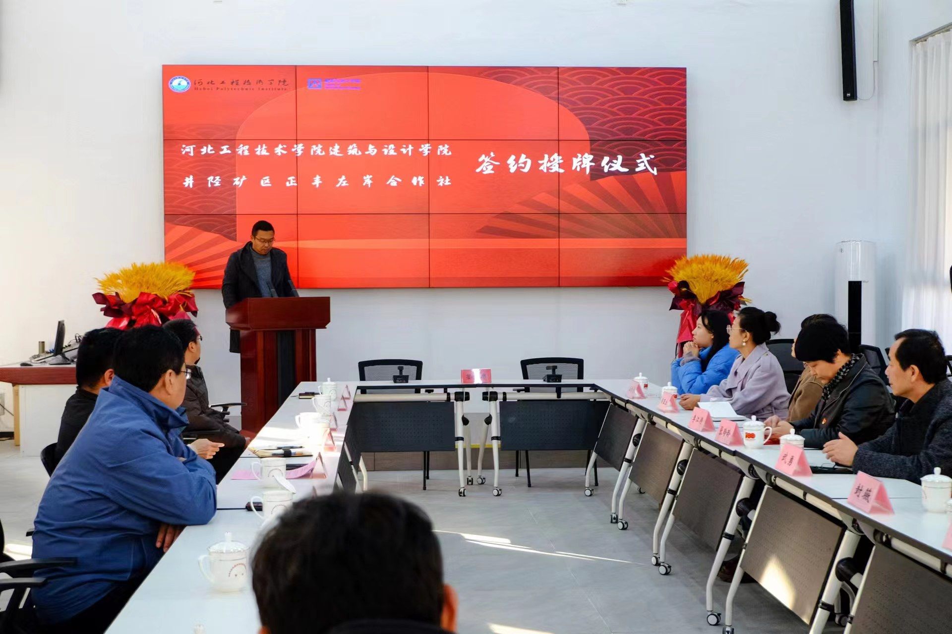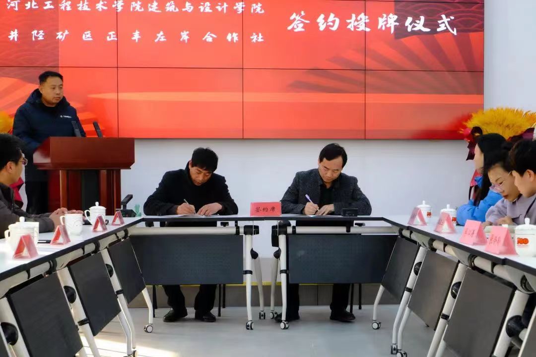为进一步提升我院各专业学生实践能力,传承和弘扬本地优秀红色文化与乡土文化,充分利用好当地资源优势,不断深化实践基地的特色育人理念,展现红色历史,传承红色基因,增强民族自豪感。12月5日,建筑与设计学院院长武勇、党总支书记副院长张玲玲、副院长李江涛携环境设计系系主任及骨干教师与井陉矿区正丰左岸合作社进行实践基地、红色教育基地签约仪式。