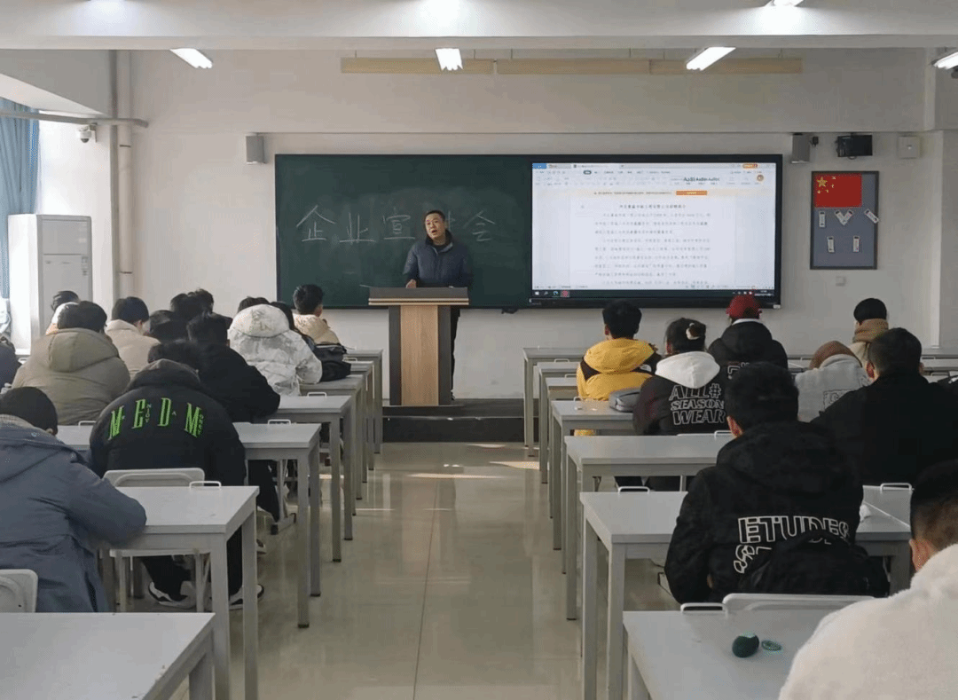 宣讲会伊始,教师和同学们对冀淼公司的到来表示热烈欢迎。宣讲会上,企业代表袁辰君经理从企业背景、企业文化、企业岗位需求及用人标准等方面为同学们进行了详细的介绍,讲述了企业岗位需求和岗位晋升机制。宣讲过程中,袁经理列举了丰富的案例,结合幽默的语言及有趣的互动,获得了同学们的阵阵掌声。会上,同学们认真聆听企业代表的介绍,将宣讲的重要信息牢记于心,并积极向企业代表提问。