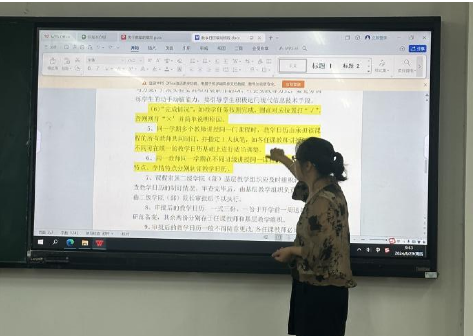 王永先老师针对教学资料的基本规范和要求,从开学初应熟悉和编写的教学资料、教学资料之间的关系、资料的编写过程中要注意的问题这三方面进行介绍。特别强调人才培养方案是教学大纲教学资料的源头,首先要明确人才培养方案的内容以及所授课程在专业培养目标中的地位以及想要达到的效果,并以《2024级工程管理专业人才培养方案》为例,介绍各个部分编写内容。针对教学日历、教案首页及教案内容的编写要求等方面进行剖析。