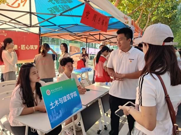 迎新期间,党员先锋岗成员统一佩戴党员徽章,在学院报到点设立专属服务台。通过“主动询问需求、全程引导办理、即时解决问题”的三步工作法,为新生及家长提供行李搬运、路线指引、报到流程讲解、校园生活咨询等“一站式”服务。针对部分新生对专业方向的困惑,教师党员还现场开展学业规划指导,帮助新生快速适应大学生活。