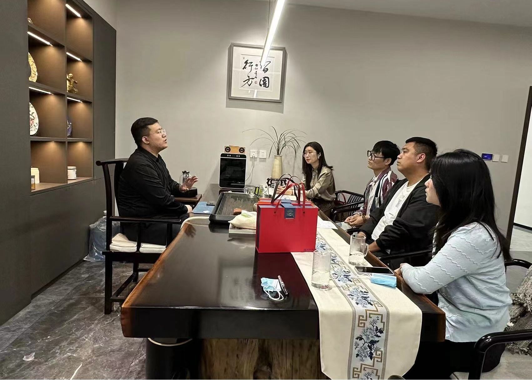 与吴总的沟通中,吴总十分详细的以通俗易懂的方式为我们介绍了毕业生来公司实习状态以及工作情况,我们探讨了校企合作可以有很多新的形势,比如设计师进校园进行实际案例的讲解、学生进入企业扩展实践学习、不同岗位的轮岗实习制度等。老师们进行积极的提问交流,过程气氛活跃,双方都收获颇丰,碰撞出新的合作火花。