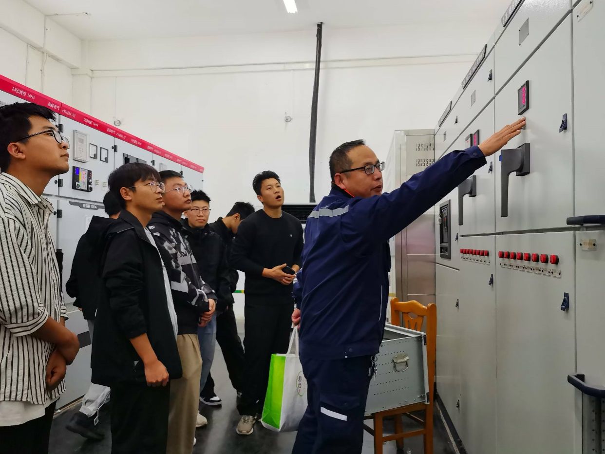 在校内电工师傅的引导下,学生们又走进了学校的高低压配电中心。在这里,专业教师结合现场设备,详细讲解了电力分配、保护与控制原理,让学生们在真实环境中体会课堂所学知识的应用。通过实地操作演示,学生们对电气安全规范、设备维护管理等有了更深的理解,理论与实践的结合让学习更加生动有趣。
