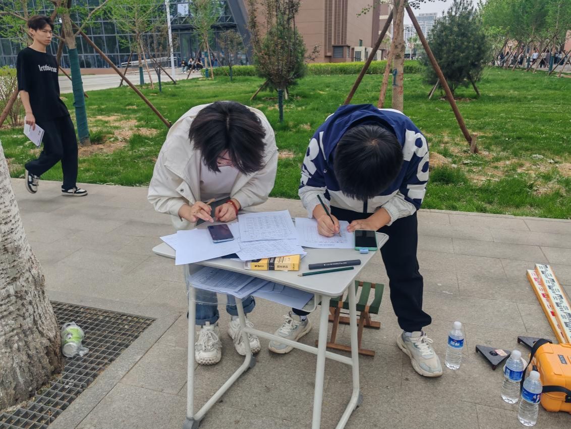 赛场上,同学们争分夺秒,在有限的时间内展现出扎实的专业功底和良好的团队协作精神。各小组分工明确、配合默契。观测员专注操作仪器,力求获取精准数据;记录员迅速且准确地记录每一个测量数值;计算员严谨运算,反复核对数据;负责成果整理的成员则认真细致地梳理资料,确保报告规范完整。尽管比赛时间紧张、任务繁重,但大家都全力以赴。遇到问题时,小组成员共同商讨解决方案,现场学术交流氛围热烈。