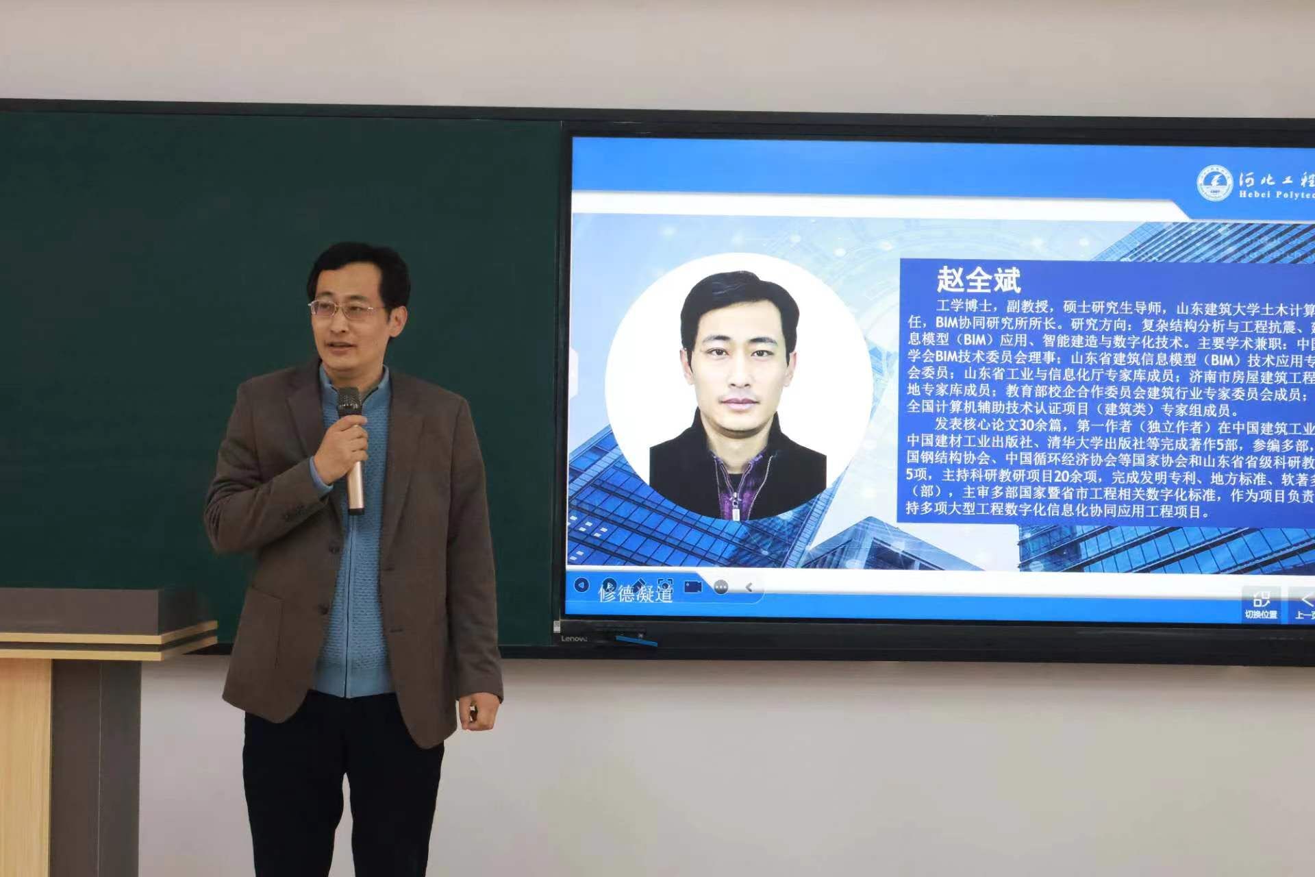 我院通过定期举办科研讲座提升学院师生的科研敏感度、科研意识,营造我院良好的学术氛围,学院于4月1日下午2:30在知行楼4-1开展了精彩讲座,此次讲座我院有幸邀请到了山东建筑大学土木计算中心主任,BIM协同研究所所长赵全斌教授。