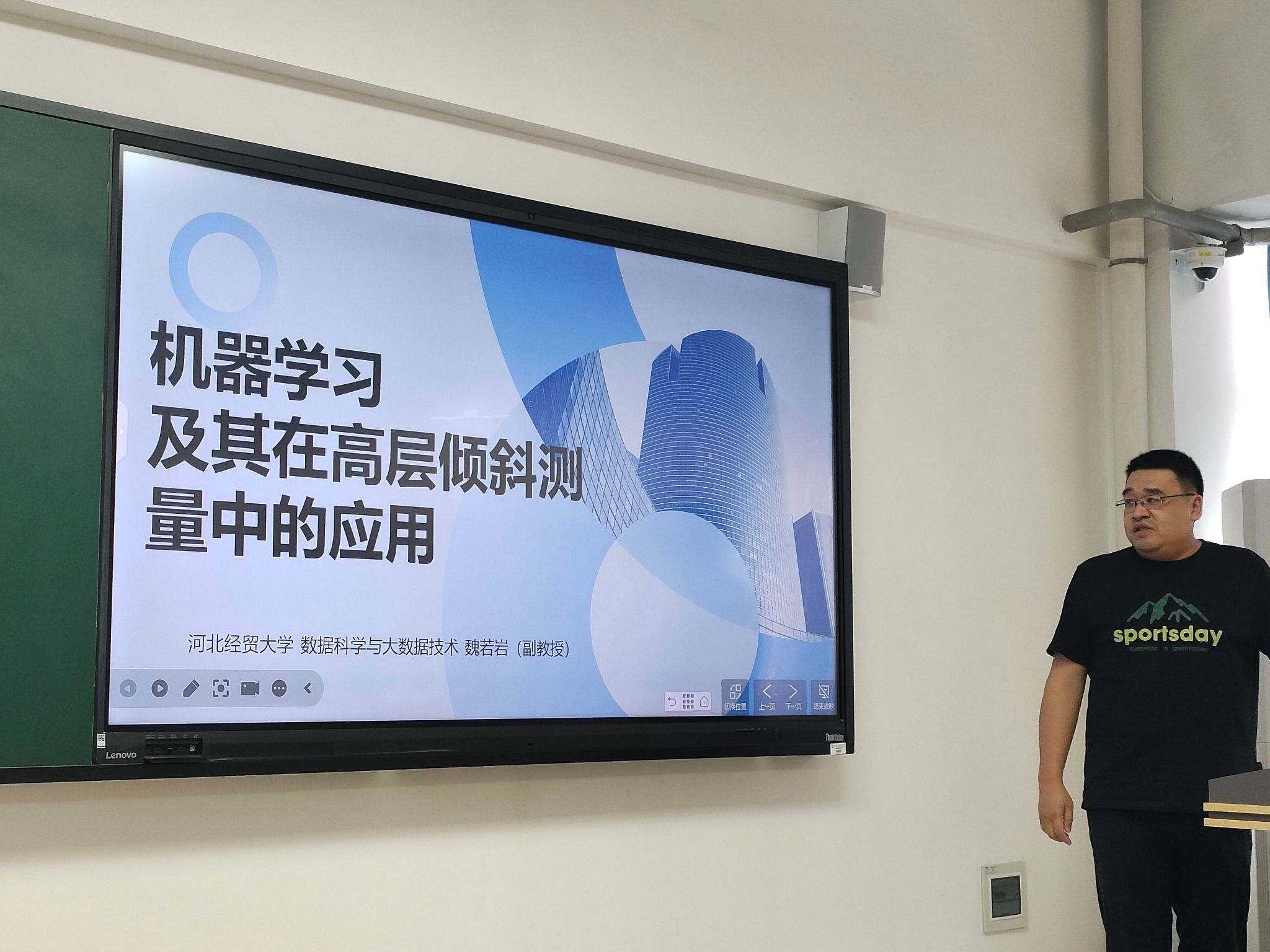 魏若岩教授从机器学习的概念与应用领域,人工智能、机器学习、深度学习三者之间的关系,机器学习的三个基本要素,机器学习算法的分类,基于Yolov5的高层建筑在自然场景下的倾斜监测系统五个方面进行了既专业又精彩的介绍。魏若岩教授重点介绍了基于Yolov5的高层建筑在自然场景下的倾斜监测系统,该系统不仅可以降低监测成本,获得更精确的监测数据,视觉测量技术还可以实现实时监测,提高监测效率。为高层建筑物的安全监测提供新的解决方案。本项目的创新特色在于将机器视觉和深度学习技术应用于建筑工程技术领域,实现自动化识别和处理。