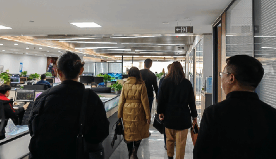 在企业技术人员的陪同下,调研组深入公司办公场所,实地了解实习生的工作环境与成长状态。在企业负责人陪同下,学院领导参观了公司设计部、项目策划部及员工交流区,近距离观察实习生参与实际项目的流程。城乡规划系主任张圆圆表示:“企业的开放式办公环境和跨部门协作模式,为学生提供了真实的职业体验场景。”