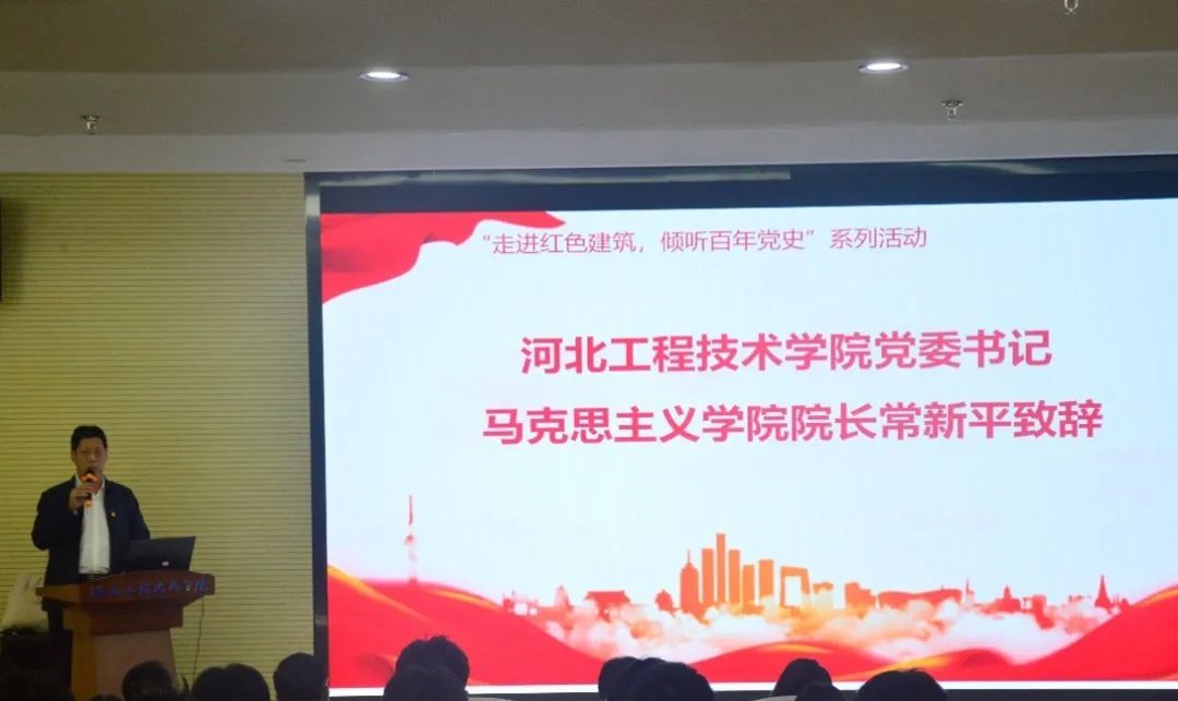 活动开始党委书记、马克思主义学院院长常新平发表讲话,带领大家回顾党的历史教育,特别是十八大以来的党史教育,深刻指出了党史教育滋养党的事业建设,滋养民族发展,滋养青年进步的重要作用,同时强调党史学习的坚持性,要求常讲常学,常讲常新,创新党史教育形式,用好“大思政”。