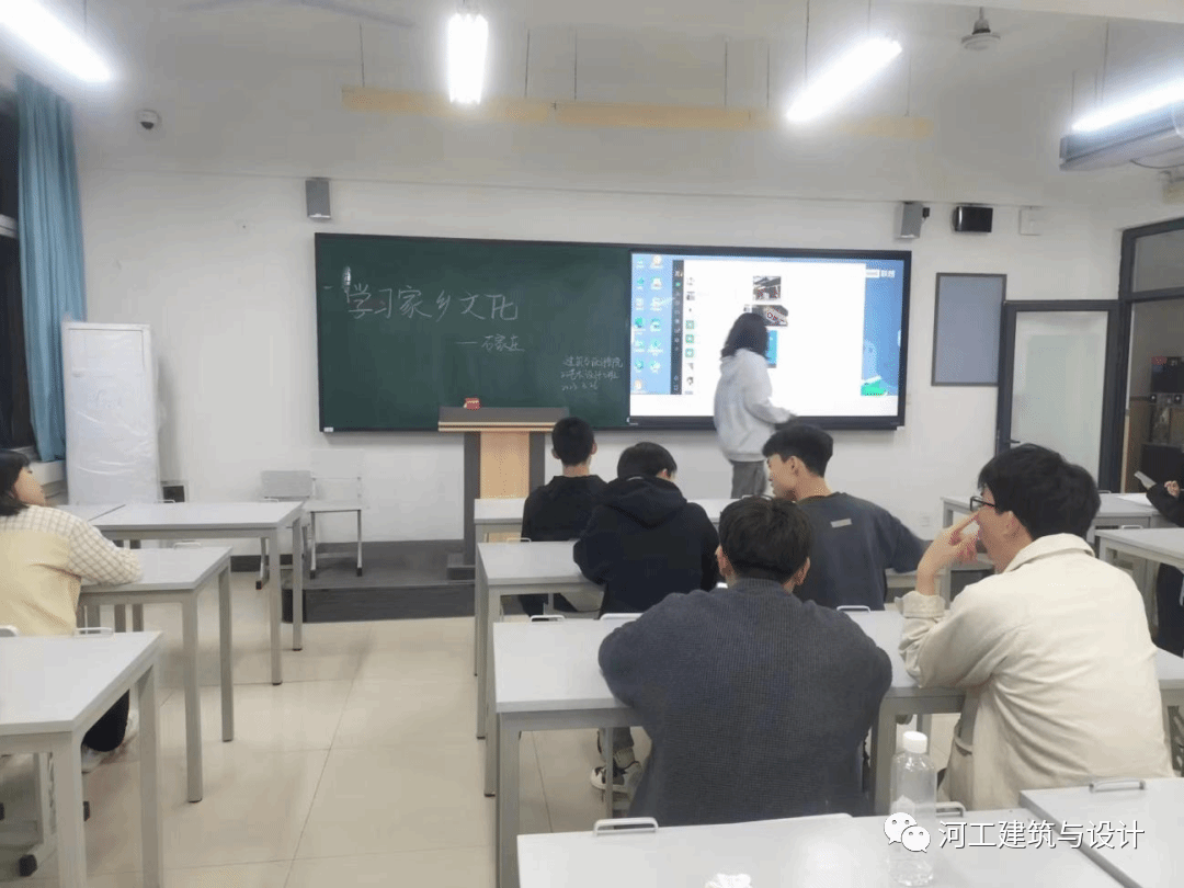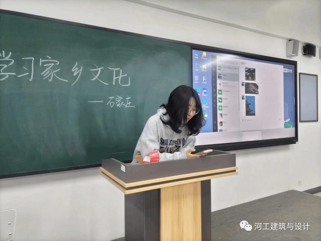 古郡新姿,乡愁国梦,称心如愿,天下正定。为了促进班级同学的团结,了解来自各地独有的家乡文化,今年会建筑与艺术学院2022级艺术设计5班同学于2023年3月26日星期日在主教606举办“百班百品”主题活动,由班长和副班长组织做好准备工作,要求同学们准时到达教室,班会于晚上7:00正式开始。同学们在教室做好准备,本次活动由李雯洋同学进行分享她的家乡——石家庄正定,由宣传委员进行拍照。活动开始,李雯洋同学进行对正定的简单介绍。