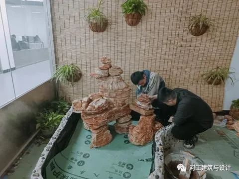 自上学期末以来,为了检验学生对知识的掌握程度,锻炼学生的动手实践能力,翟美珠老师组织学生开展了室内景观水池设计和施工的开放性实验。参与此次开放性实验建设的师生克服了疫情等多重考验,在翟老师的带领下,历经两个学期完成了室内景观水池的设计、水池的施工、假山施工、环境装饰等实验项目。从选址到设计构思,从施工材料的挑选、搬运到成型,学生们一步步强化自身的动手能力,真正做到了将理论知识与实践相结合。在实验过程中水池的砌筑、防水涂料的涂刷、给水池壁粘小石子、假山石的堆叠、灯具的安装与调适等,对于学生们而言这些无一不是“新领域”。在每一步的实验操作中翟老师都亲身示范,同学们也能够认真的学习。