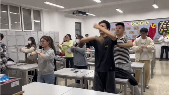 运动是一切生命的源泉,我班以舞蹈锻炼身体,以舞蹈焕发激情,用文体委员积极筹划组织该活动,我们在晚自习时间共同学习了《本草纲目》健美操,全班同学在教室通过智慧大屏一起观摩学习。通过练习改进我们你终录制了视频记录此次难忘的活动。