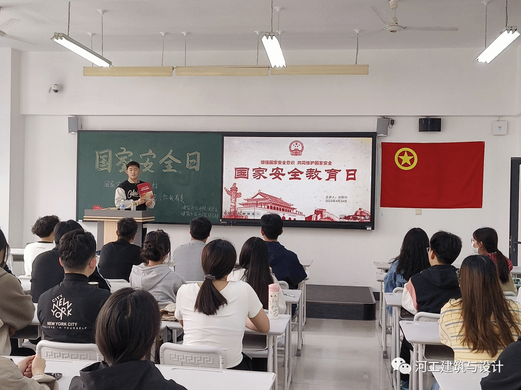党的二十大报告关于推进国家安全体系和能力现代化,坚决维护国家安全和社会稳定做出了重要部署,国家安全是民族复兴的根基,社会稳定是国家强盛的前提,我们必须坚定不移贯彻总体国家安全观,把维护国家安全贯穿党和国家工作各方面全过程,确保国家安全和社会稳定。为了深入贯彻落实总体国家安全观,进一步学习宣传国家安全的基本知识,加强同学们自觉投身国家安全的责任感和使命感,提高同学们的防范意识和能力。特此,今年会建筑与设计学院团务部于4月14日开展了国家安全教育日专题学习会。