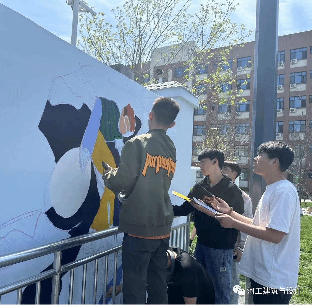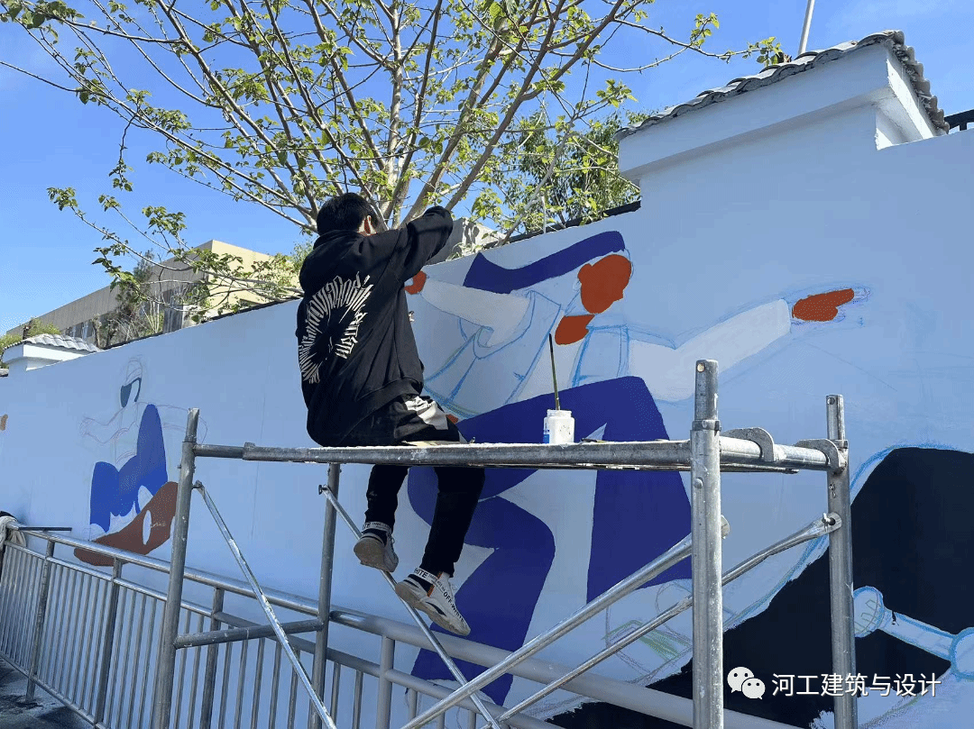 近日,在河北工程技术学院轮滑场多了一道靓丽风景线,建筑与设计学院与“红色合伙人”22级、21级各班携手开展“运动·健康”手绘墙主题活动。现场,在建筑与设计学院学生志愿者共同参与和精心创作下,百米手绘文化墙成功“出炉”,一幅幅形象生动、色彩绚丽、形式新颖的画面呈现在大家面前,赚足了“眼球”,赢得了称赞。