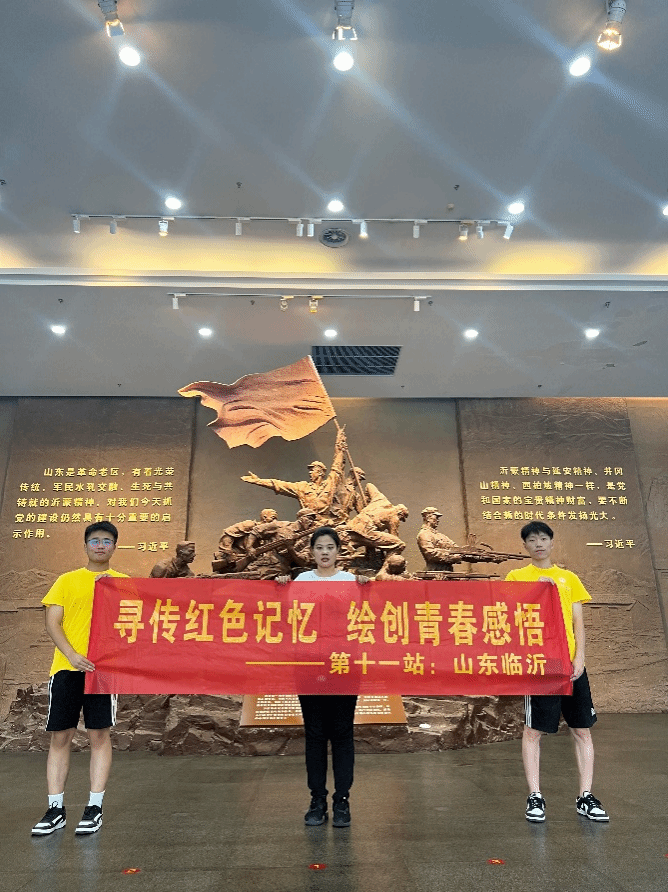为传承红色基因,发扬革命精神,强化理想信念,锤炼党性修养,河北工程技术学院建筑与设计学院“绘忆红色”小队来到了山东临沂--沂蒙革命纪念馆。作为一座重要的红色教育基地,通过参观,使我们更加深刻地感受到了沂蒙精神的伟大意义和深远影响。馆内陈列的历史文物和图片让我们仿佛穿越到了那个激情澎湃的革命时代。这些珍贵的展品见证了沂蒙人民英勇奋斗的历程,也向我们展示了他们为实现共产主义理想所付出的巨大牺牲。通过观览,我们不仅对沂蒙革命的历史有了更加深入的了解,更对英雄们的崇高精神深感敬佩。
