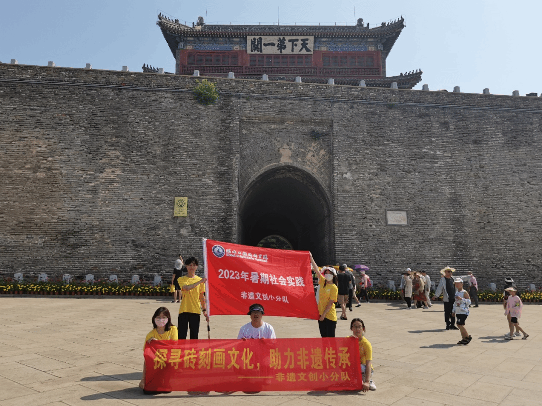 一关峙山海,万里护风云。素有天下第一关之称的山海关,因其依山襟海得天独厚的地理优势以及巍巍耸立跨越数百年的文化底蕴而备受瞩目。近日,河北工程技术学院非遗文创小队跟随许泽楠老师的脚步,来到山海关探寻古朴厚重的长城与苍劲有力的砖刻画在悠悠历史长河中如何相互碰撞与交融,以期为非物质文化遗产的传承与创新提供重要路径。