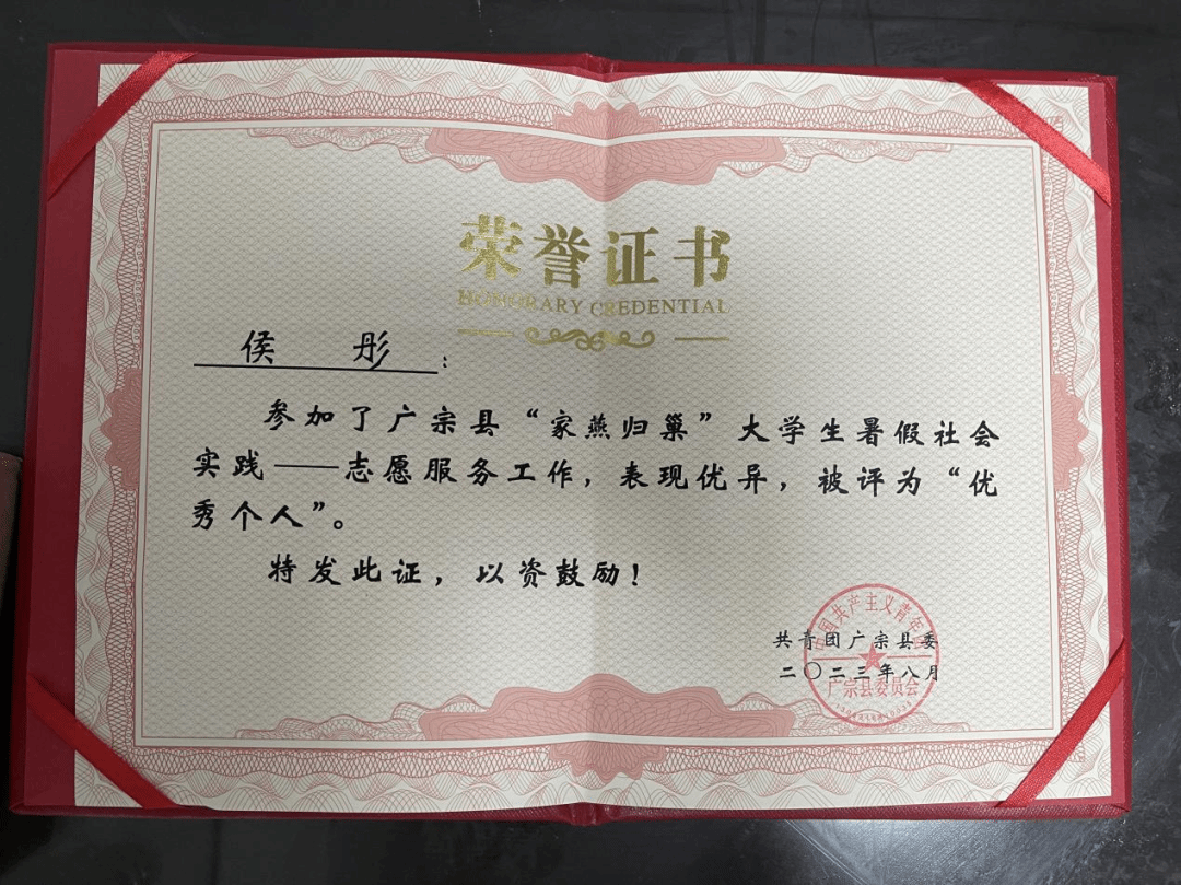 以青春之名,赴家乡之约。社会实践是每一个大学生难忘的经历,促进大学生素质教育,加强和改善青年学生思想政治工作,引导学生健康成长和成才的重要举措,是学生接触社会、了解社会、服务社会,培养创新精神、实践潜力和动手操作潜力的重要途径。建筑与设计学院2022级艺术设计学3班侯彤同学参与了家乡“家燕归巢”大学生暑期社会实践活动,在河北省邢台市广宗县北塘疃镇人民镇府进行了暑期学习与实践,成为了返乡高校生志愿者中的一员。