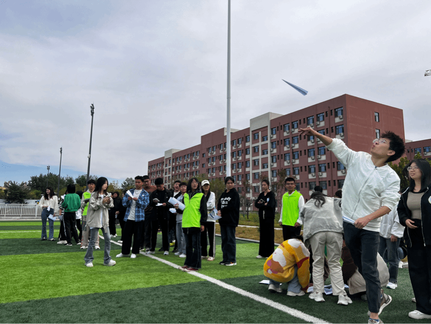 “纸飞机扬起的,不止是你我的童年,更是无忧无虑的时光,握住这张纸写下你的梦想,再玩一次在阳光下追逐飞机的游戏吧!”活动开始后,首先由工作人员给参加活动的同学讲解活动过程,同学们开始在纸上写下自己的梦想后并试飞,工作人员组织参与活动的同学进行排队并维持现场秩序。最后由工作人员组织同学们进行放飞梦想并让同学们带走了写着各自梦想的纸飞机。此次活动中我们发现了同学们的动手能力,看到了同学们各自的梦想,感受到了同学们探索的热情,也领略了同学们青春的风采。