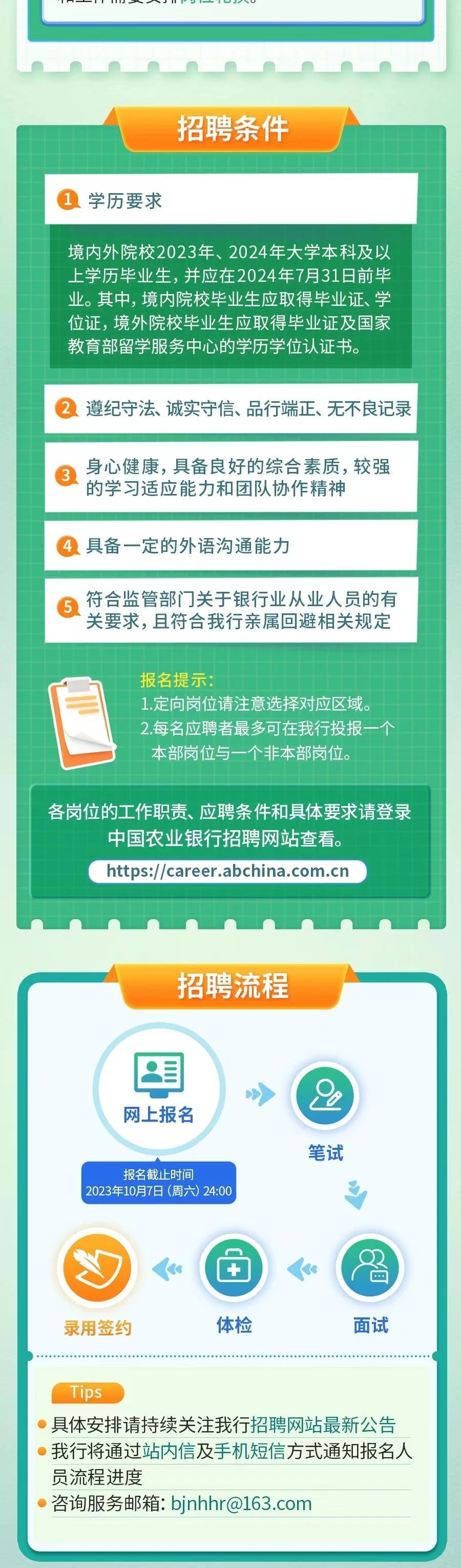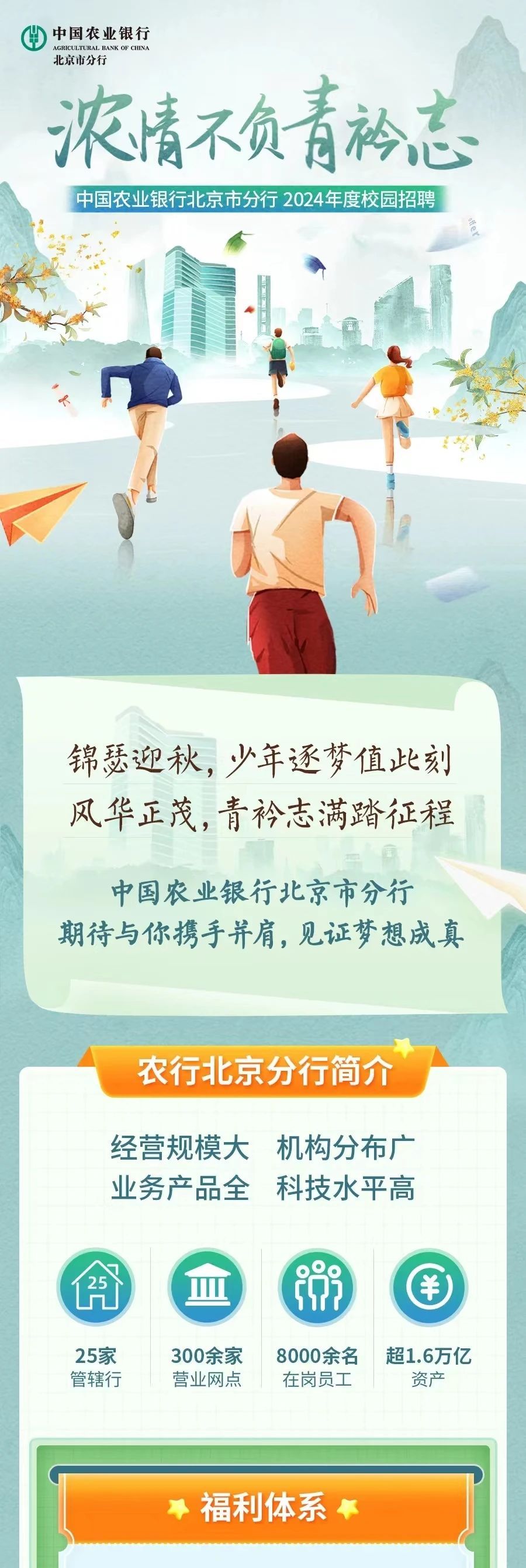 「招聘公告」中国农业银行北京市分行2024年度校园招聘!