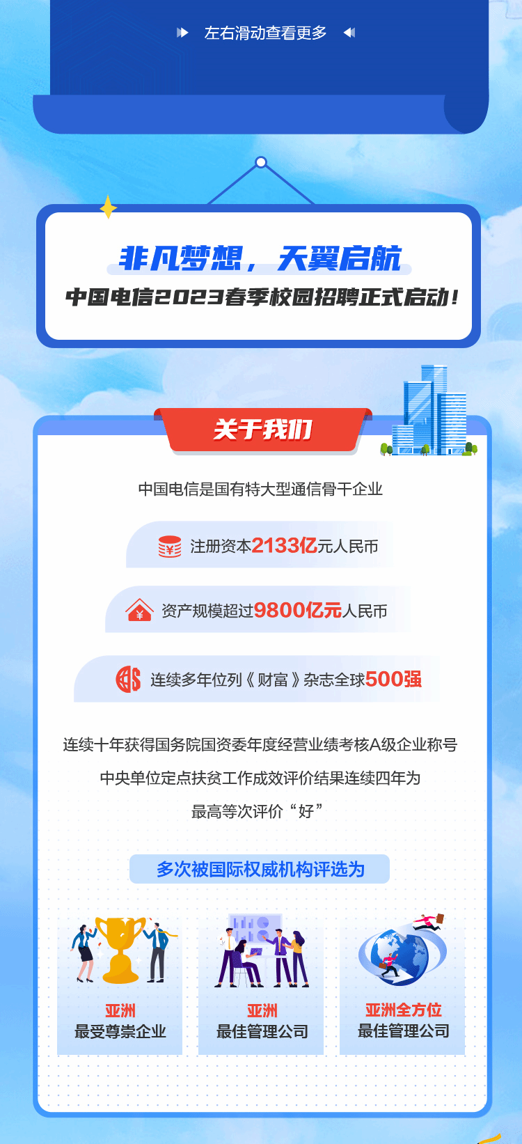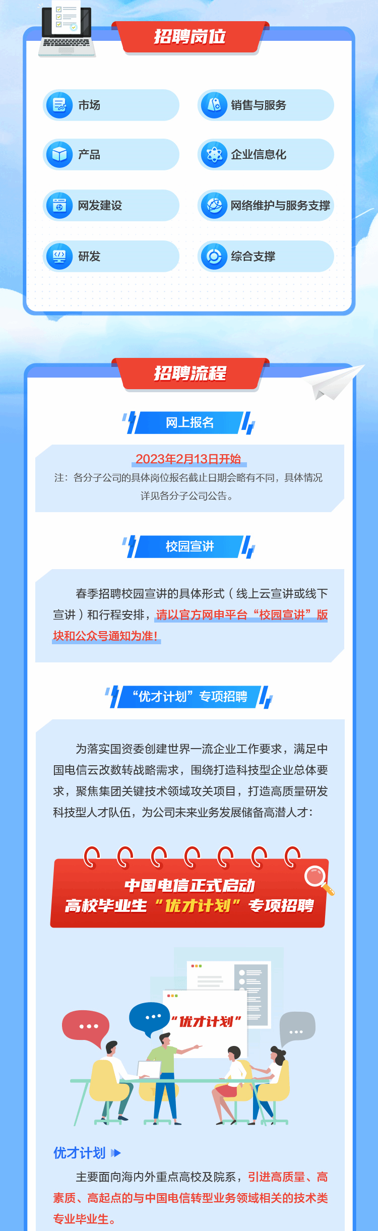 「招聘公告」中国电信2023春季校园招聘正式启动!