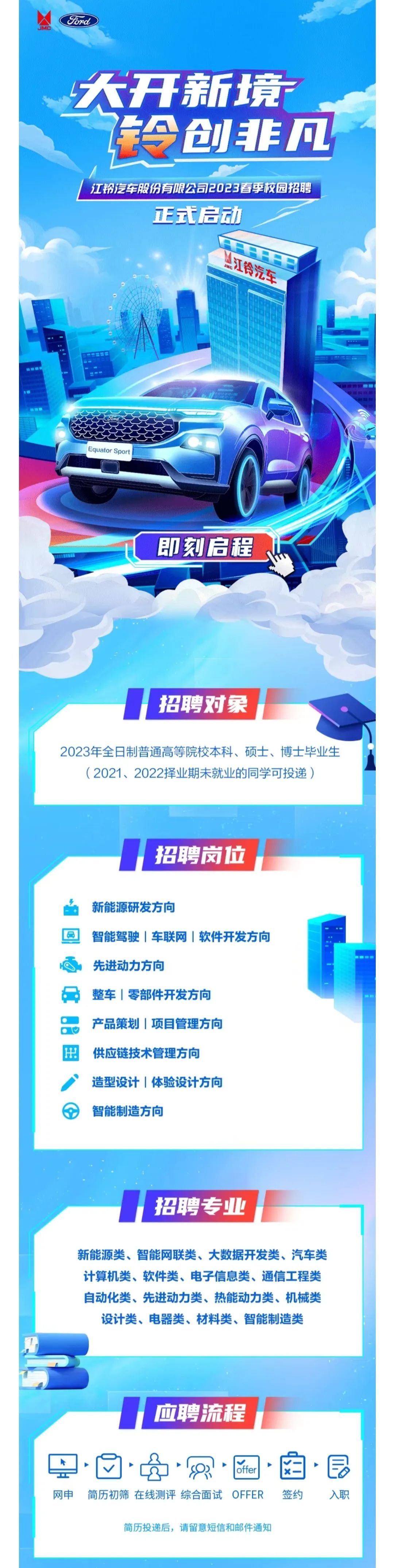 「招聘公告 」大开新境 铃创非凡|江铃汽车股份有限公司2023春季校园招聘
