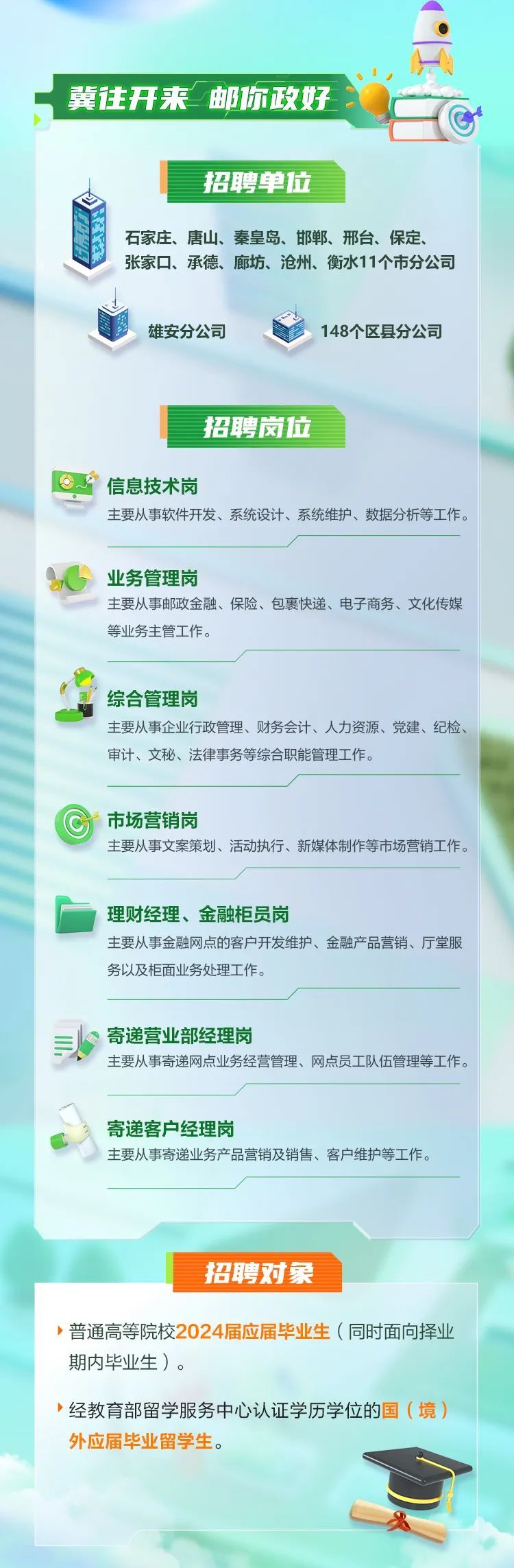 「招聘公告」2024年河北邮政秋季校园招聘今天开始了!!!