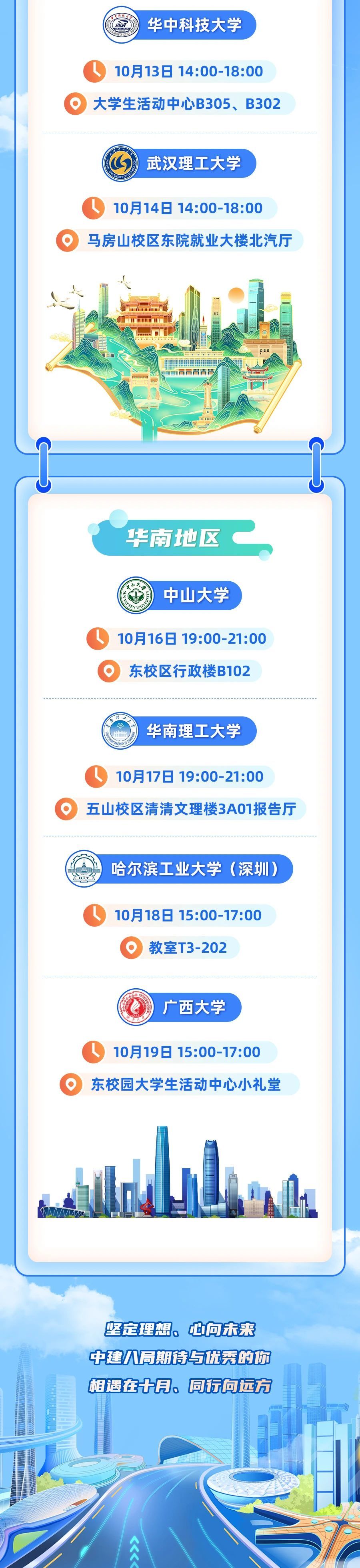 「招聘公告」中建八局2025届校招速递!10月行程预告