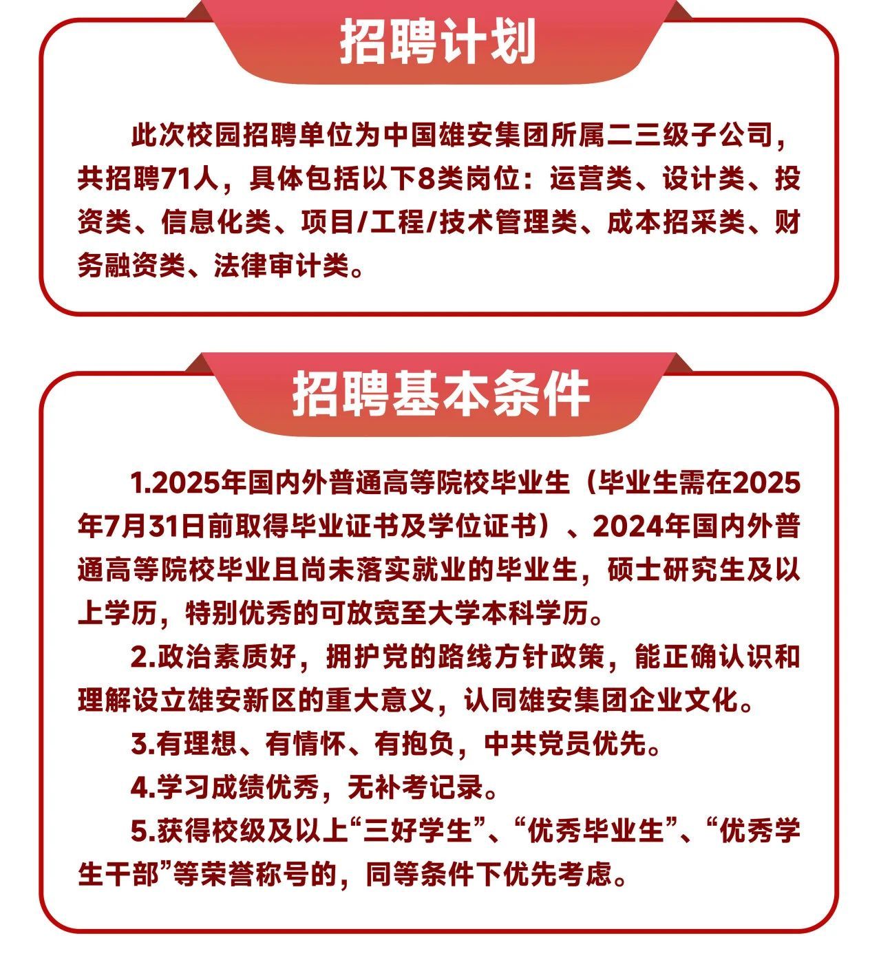 「招聘公告」中国雄安集团有限公司2025年校园招聘