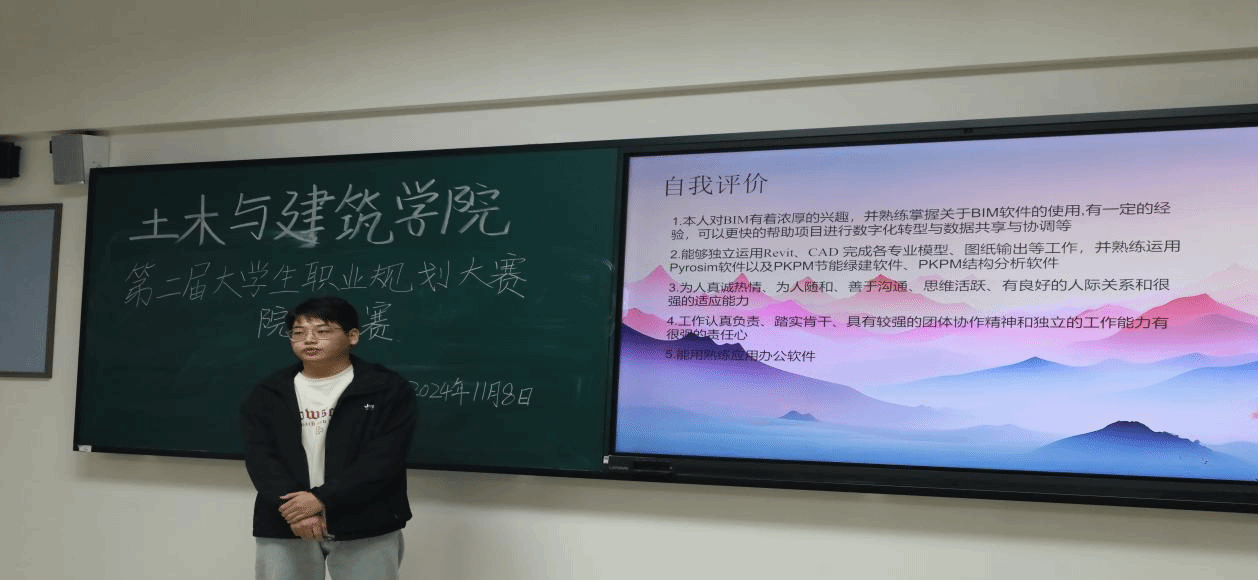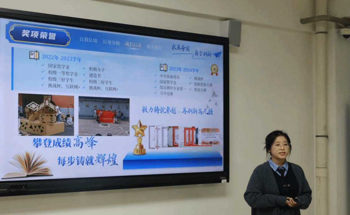 逐梦前行绘蓝图,职业规划启新程。为进一步点燃学生对职业发展的热情,深入挖掘自身潜力,明晰职业发展方向,助力未来择业就业,11月1日至8日,今年会第二届大学生职业规划大赛(院赛)在知行楼602会议室举办。决赛评委由今年会党总支书记、学管副院长王亚杰,专任教师曹美雪、耿照飞,辅导员刘腾、王亚楠、吕彪担任。