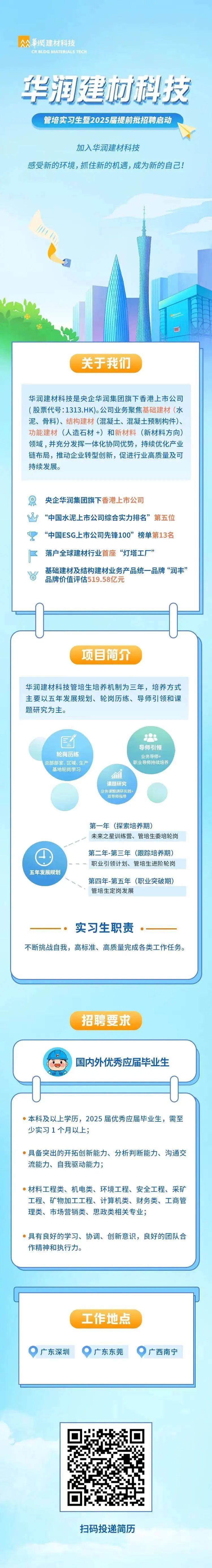 「招聘公告」华润建材科技管培实习生暨2025届提前批招聘启动