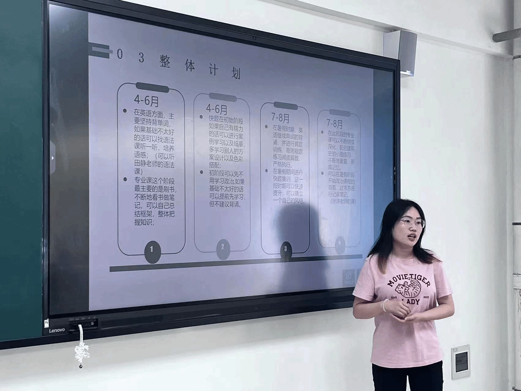 在分享中,陆鸿飞同学以自身的考研经历为引子,详细阐述了自己对英语、政治及专业科目的复习方法,并列出不同时间段应做的准备,同时强调备考时自律和坚持是尤为重要的,要找到适合自己的学习方法高效备考,他建议同学们可以寻找自己的考研“塔子”,在相互鼓励中携手进步。