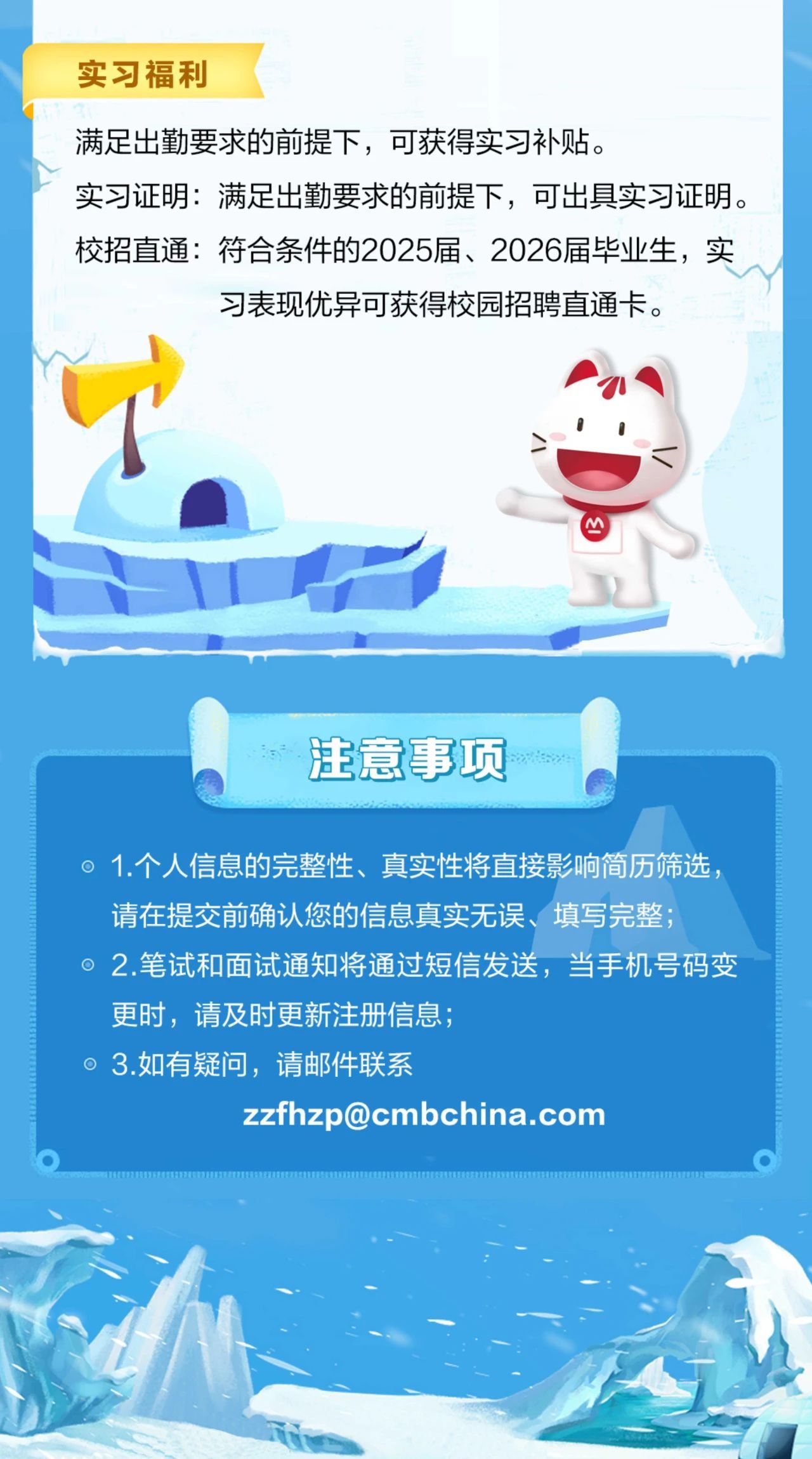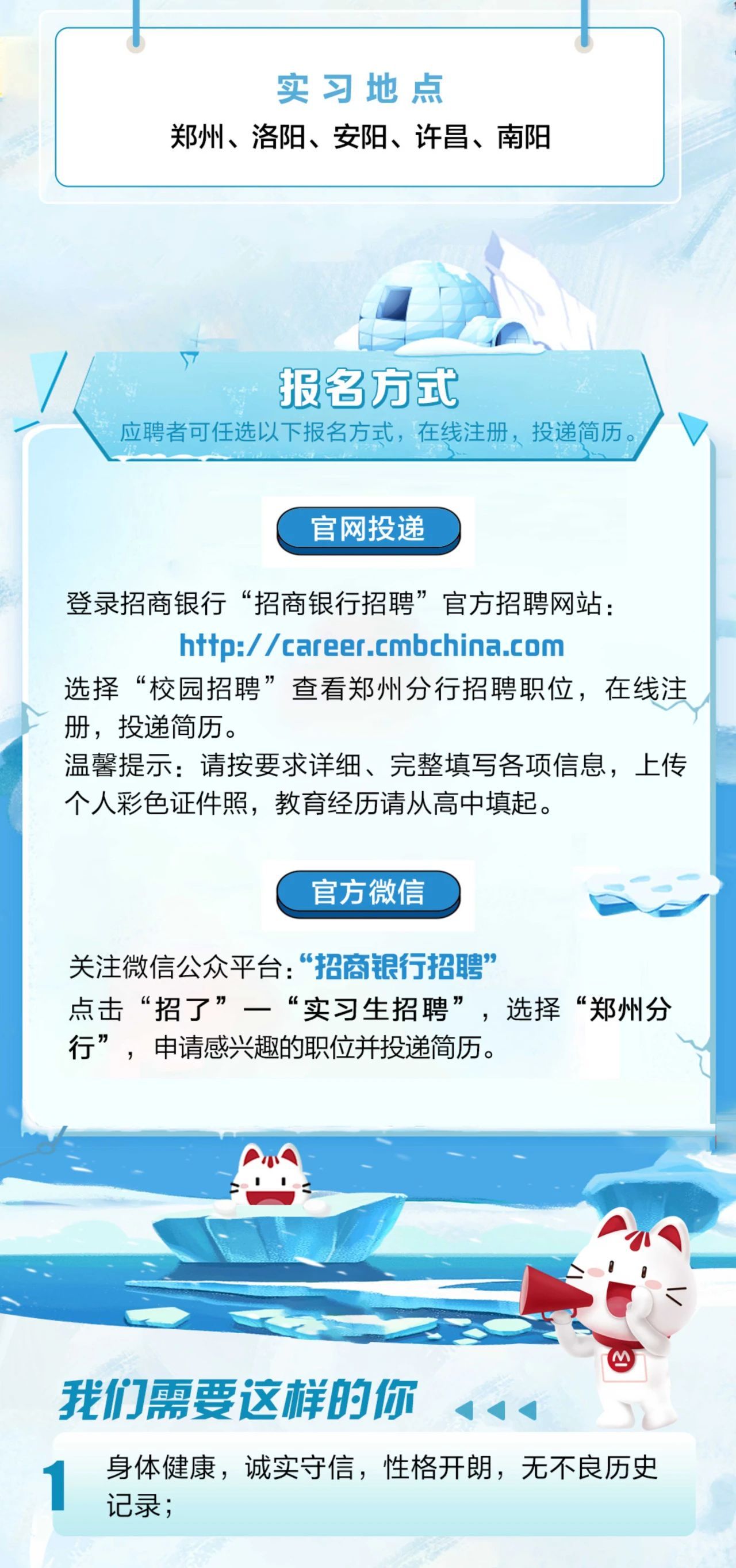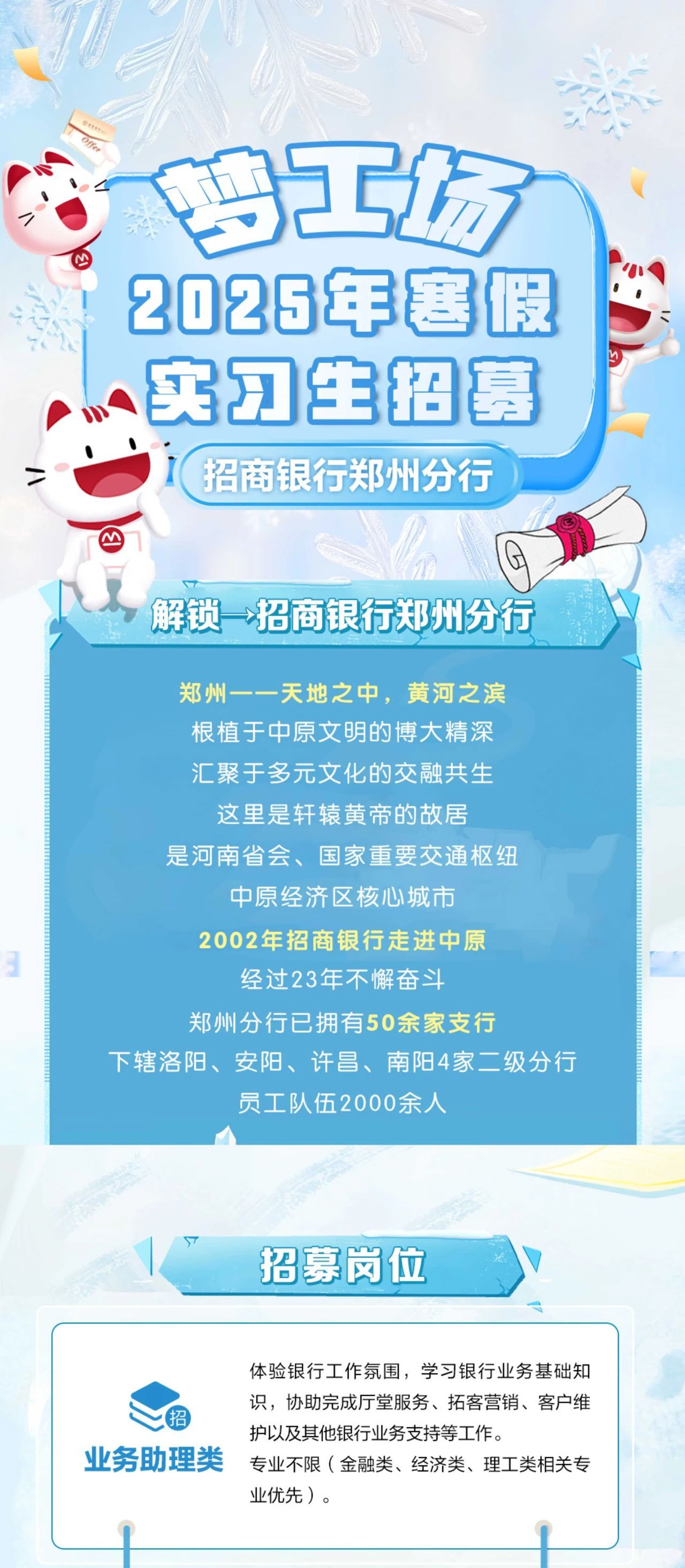 「招聘公告」招商银行郑州分行2025年寒假实习生招聘