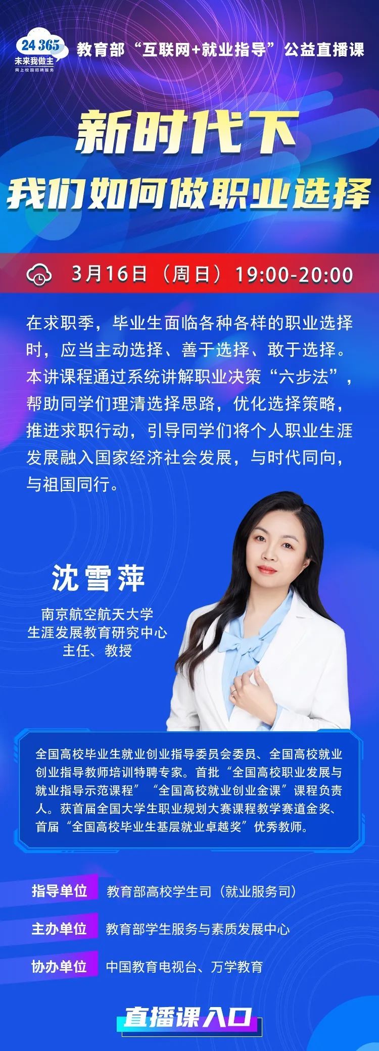 课程预告 | 教育部“互联网+就业指导”公益直播课:新时代下,我们如何做职业选择