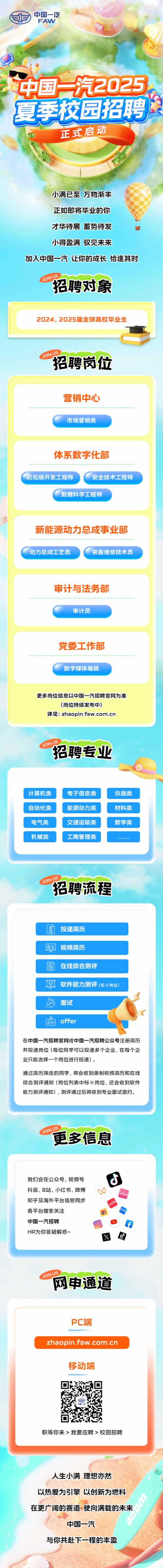 「招聘公告」中国一汽2025年夏季校园招聘正式启动